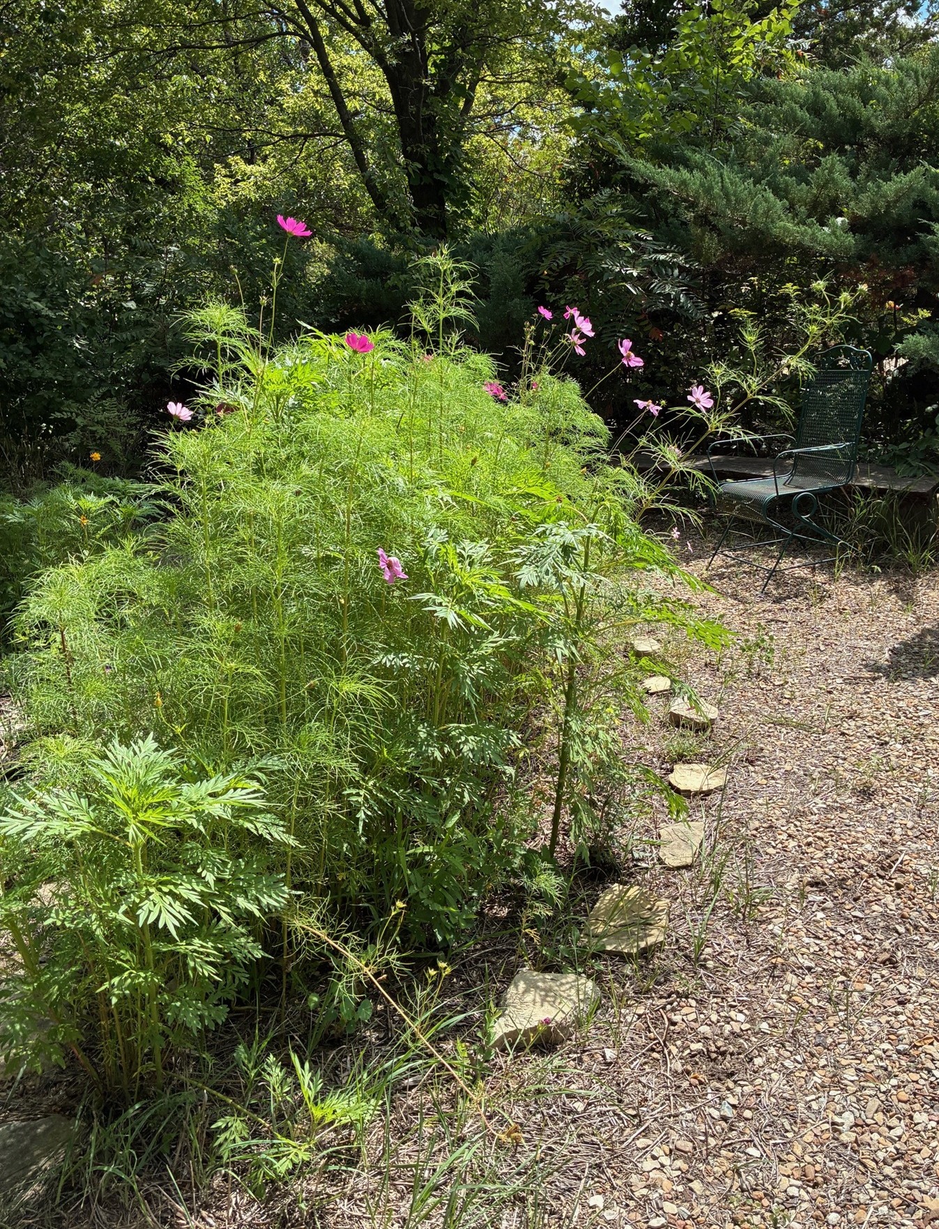 There was a freeze last week so that was the end of my “stunning garden of multicolored cosmos surrounded by a golden border of nasturtiums”. I put this in quotes because that’s what I was hoping for when I started my latest flower project in March, but not quite what I ended up with. I live on seven and a half acres and most of it would qualify for the British term “rewilding”. I like to think that puts me on the cutting edge of things, although at times I imagine a landscape company paying me to put a sign in my yard “Hire us before it’s too late”.