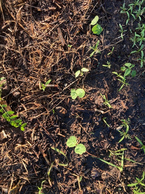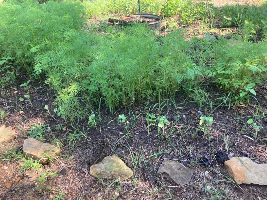 It wasn’t long before tiny green leaves began to appear. Pretty soon there was a border of nasturtium leaves and then what looked like a little cosmos fairy fern forest. I told my granddaughter Harper (when she was six months old and would still sit still) that one day we’d make a fairy garden and now I imagine incorporating some fern-like plants.